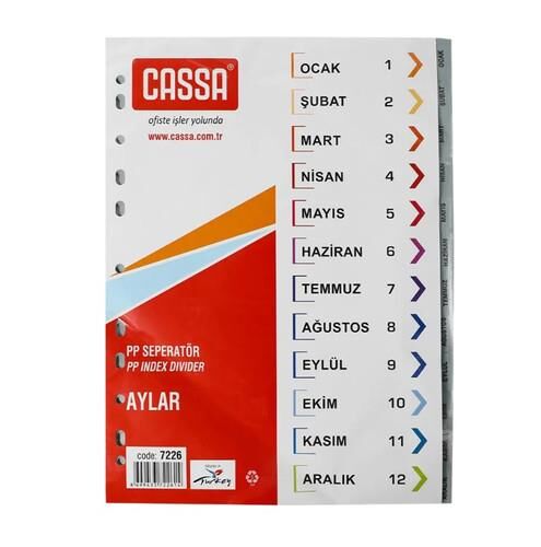 Ürün Özellikleri: Cassa Seperatör Ocak-aralık Aylar Ayraç 7226