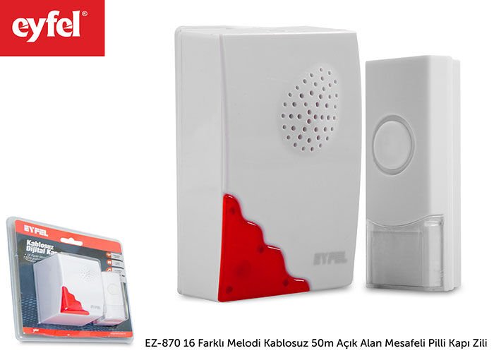 Ürün Özellikleri: Eyfel Ez-840 16 Farklı Melodi Kablosuz 50m Açık Alan Mesafeli Pilli Kapı Zili