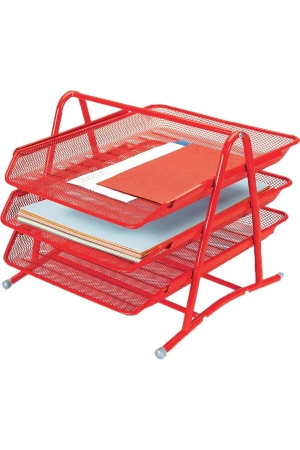 Gıpta Evrak Rafı 3'lü Metal Perforeli Kırmızı 4-f000200-5001