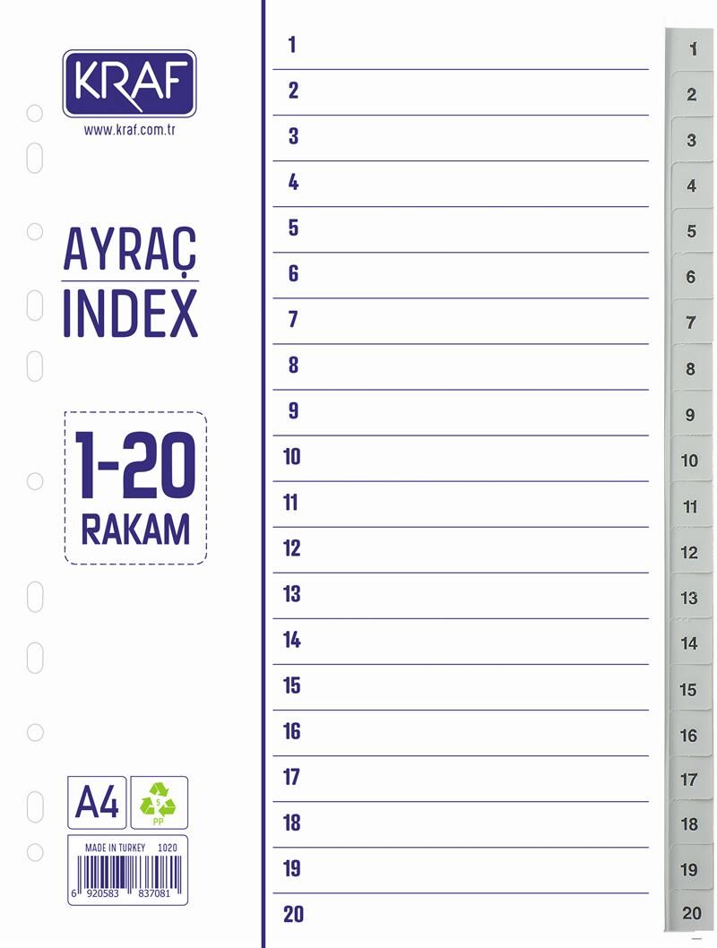 Ürün Özellikleri: Kraf Seperatör 1-20 Rakam 1020