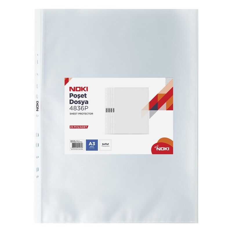 Ürün Özellikleri: Noki Poşet Dosya A3 Dikey 25'li (90 Mic) 4836-p
