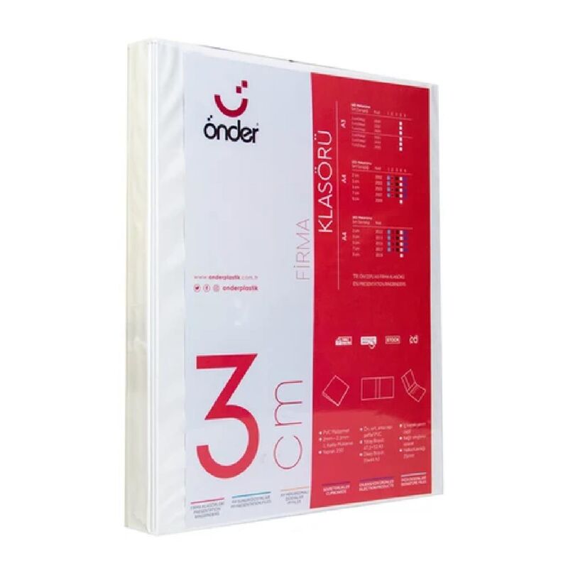 Ürün Özellikleri: Önder Sunum Klasörü 4 Halkalı 30 Mm A3 Dikey Beyaz 2020-5