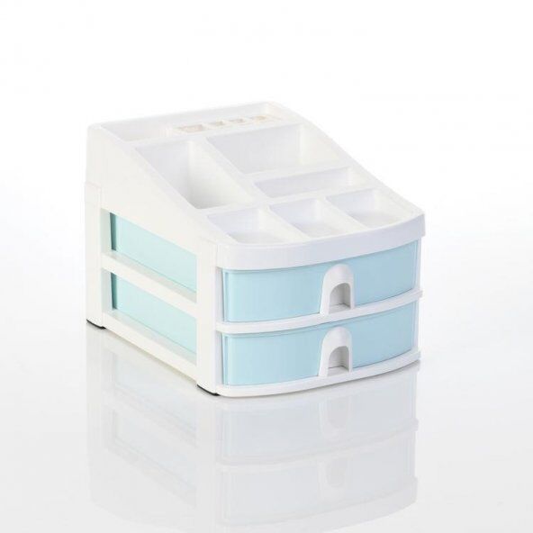 Ops Organizer Beyaz Gövde Pastel Mavi Çift Çekmeceli Co7200-pma