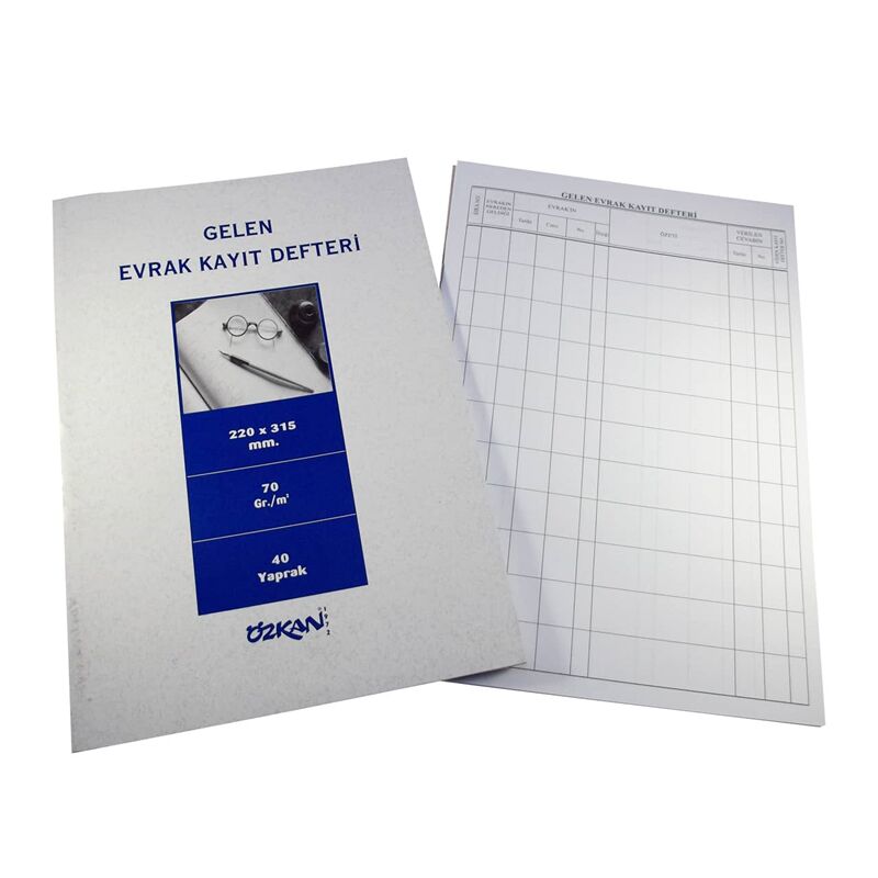 Ürün Özellikleri: Özkan Gelen Evrak Kayıt Defteri Karton Kapak 40 Yaprak G0527