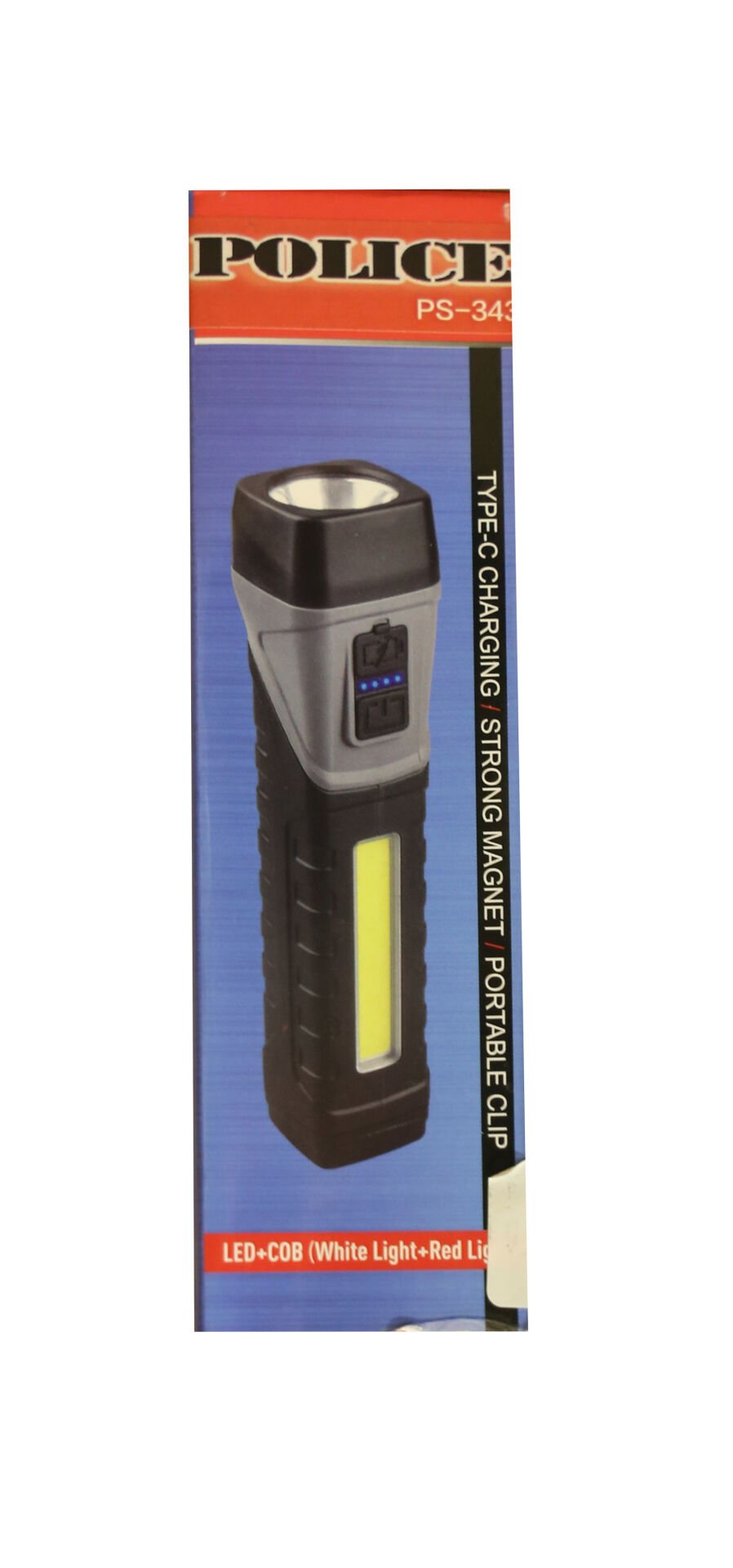 Ürün Özellikleri: Polıce Ps-343 Magnetli, 90 Derece Oynar Başlık, Kırmızı İkaz Işıklı Şarjlı El Feneri