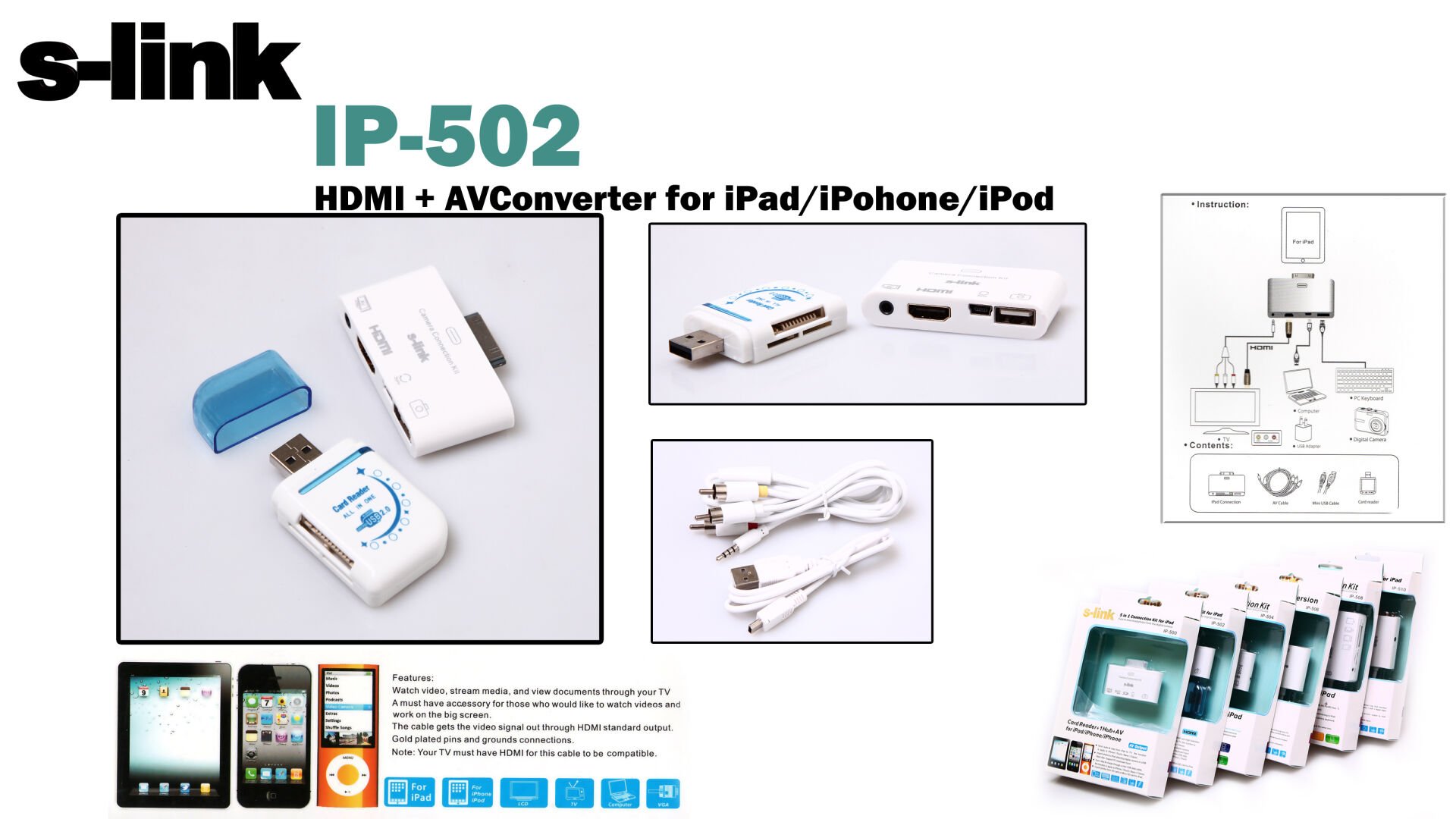 Ürün Özellikleri: S-link Ip-502 -iphone-ıpod Hdmı+av Konnektör